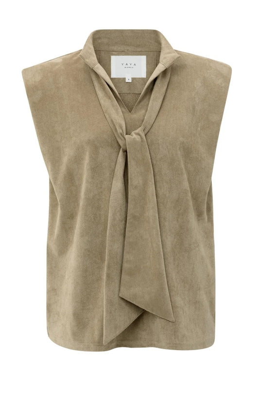 Suedette Top with Tie Detail and Collar